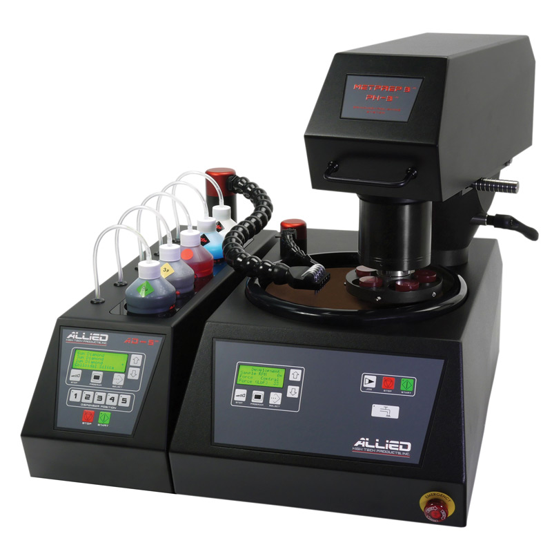 MetPrep3™研磨/抛光机可配8”或10”研磨盘,可选配PH-3™或PH-4™研磨头以达到半自动研磨的功能,非常适合从单个到多个样品制备要求。多种组合适合大多数实验室,应用或材料的理想解决方案