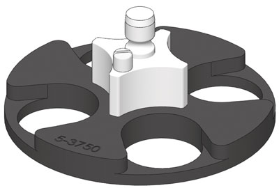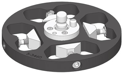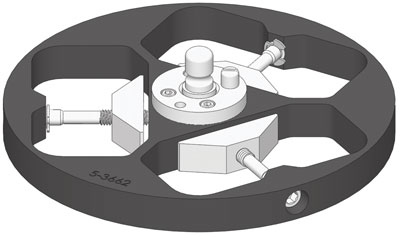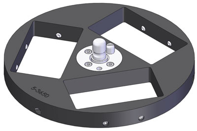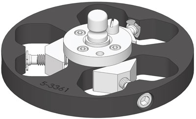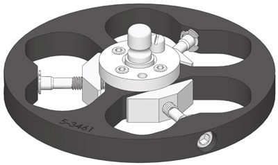 | 样品架,(3)位置夹具样式1.25“x 2”(32 x 50 mm)口,用于中心加力,用于10“(254 mm)研磨盘 |